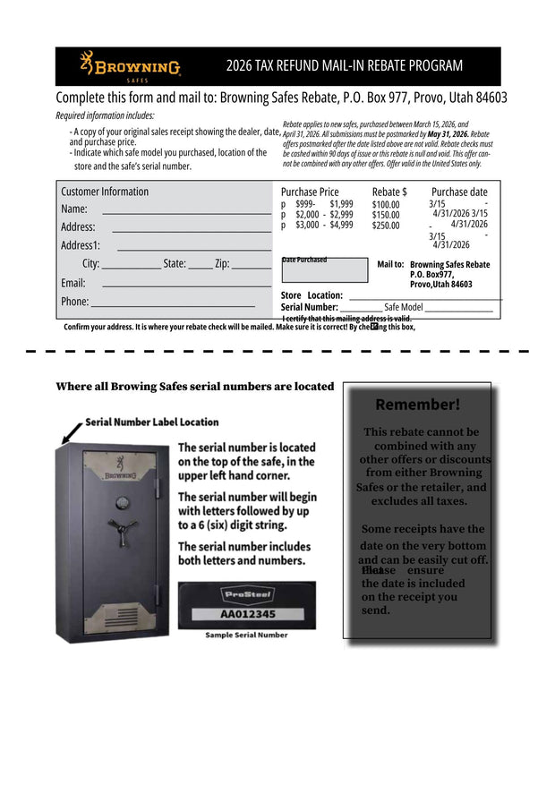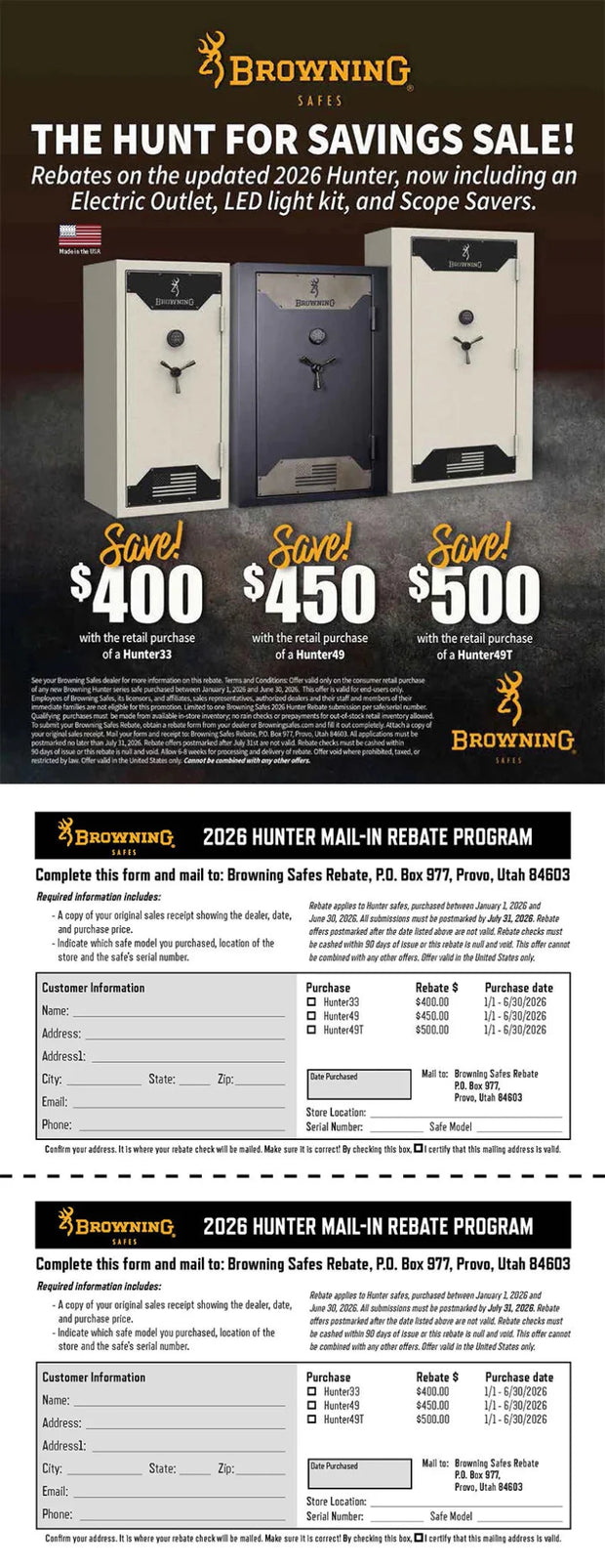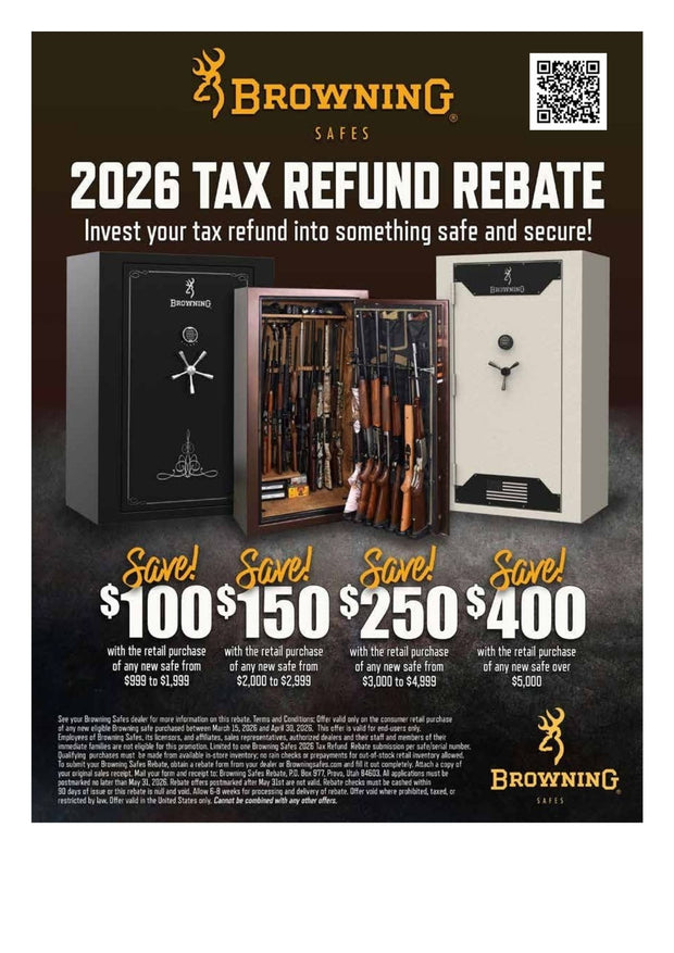 Customers who purchase the Browning Hunter 49T Gun Safe qualify for $500 cash back through the Browning rebate program.